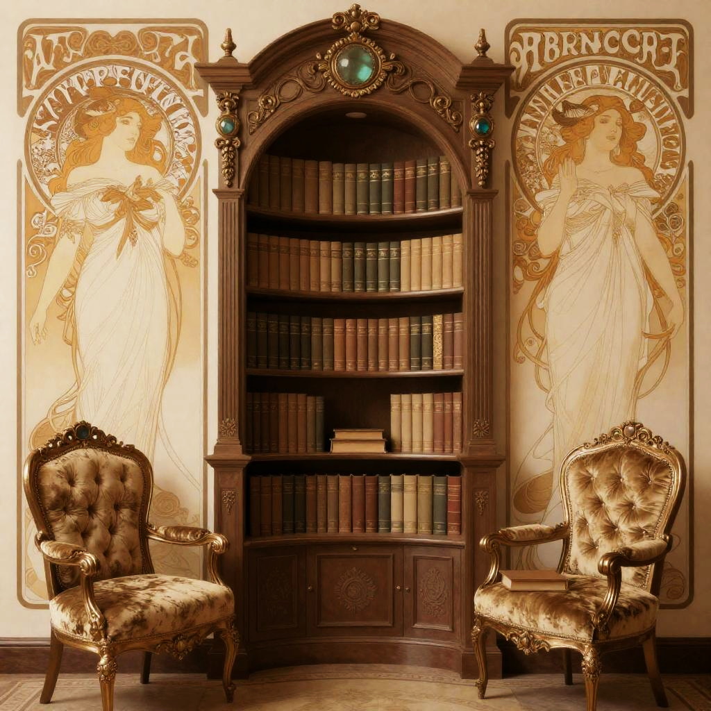 Ethereal Sepia Art Nouveau Bookshop Alcove