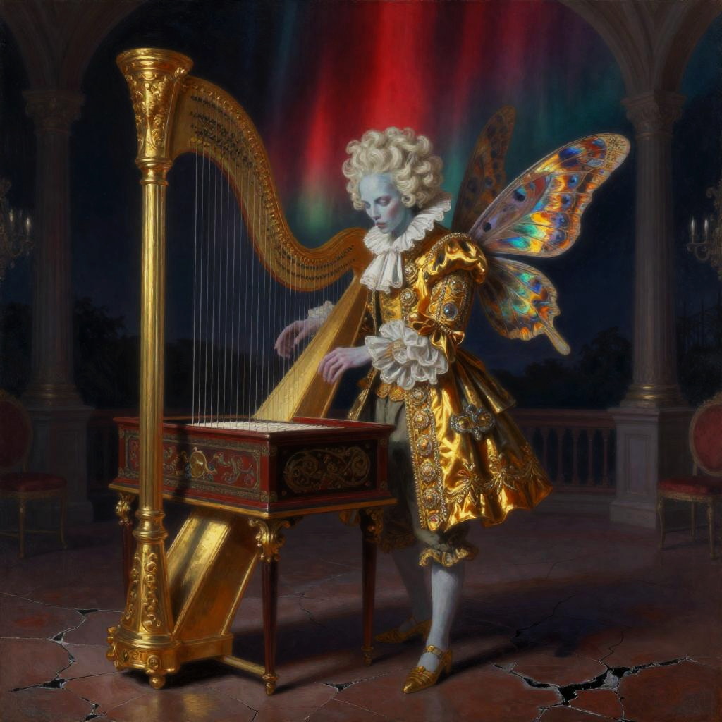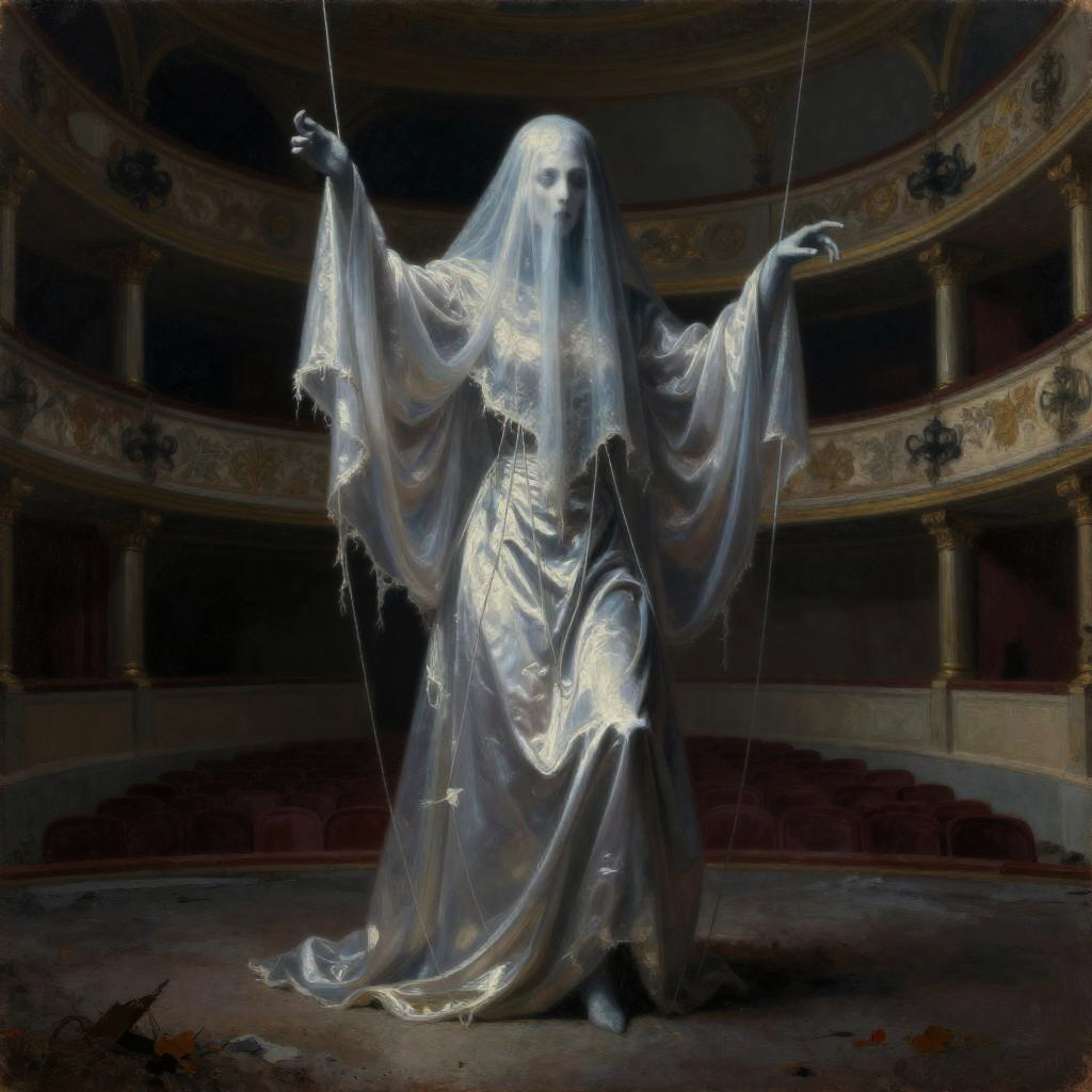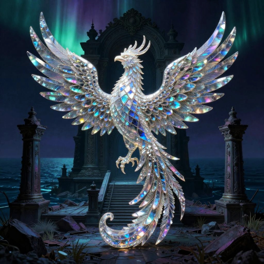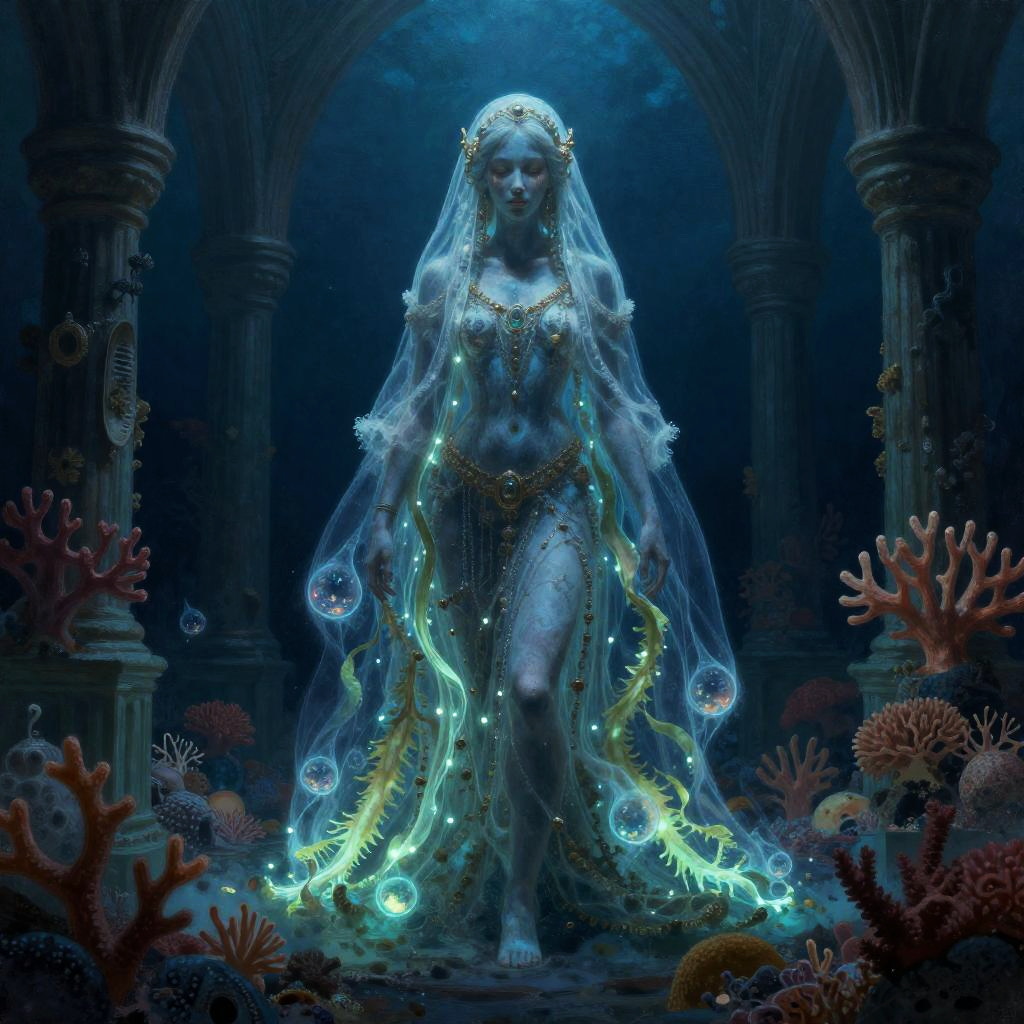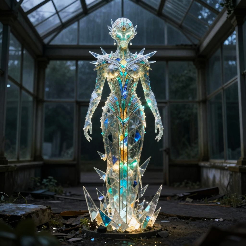 A clockwork monk draped in a cascading mantle of interlocking gears and prayer beads stands in an abandoned bell tower. This entity showcases a blend of wabi-sabi and steampunk fusion, rendered in a captivating patinated bronze sculpture.