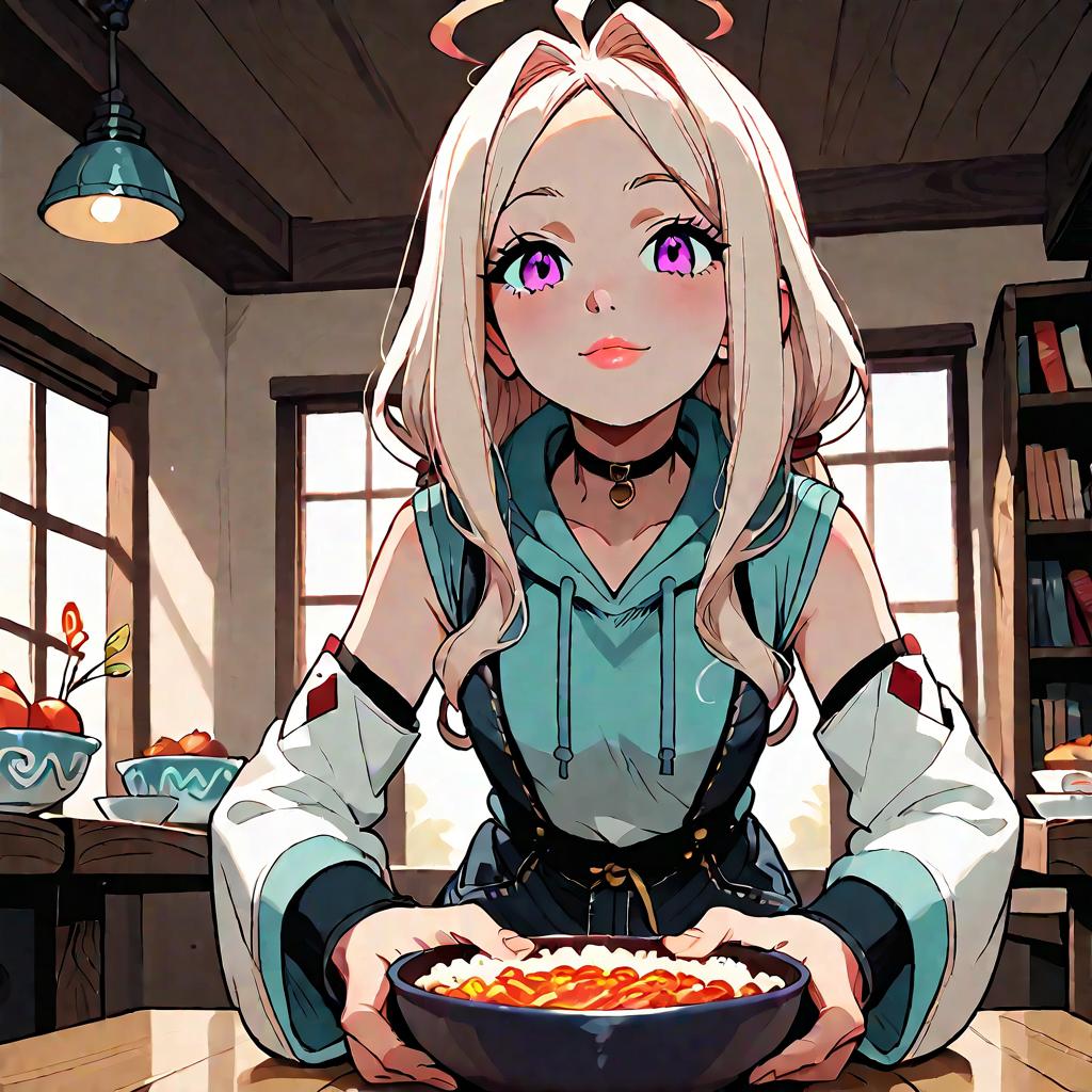 Anime Girl Sitting with Bowl