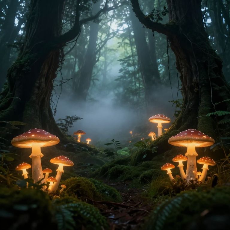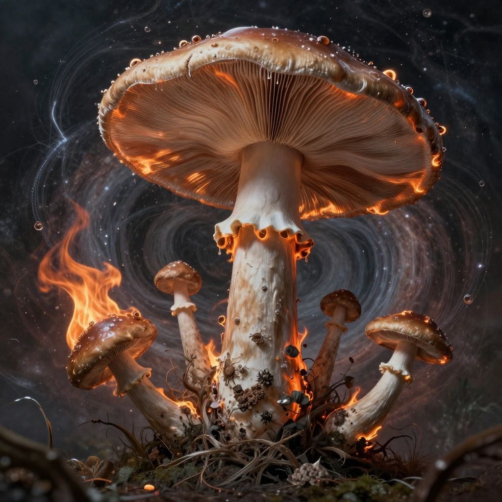 Data Jack luminous backlit glowing forest mushroom 🍄 🔬 🦠 🧫:: macrophotography, high speed camera:: single raindrop dripping 💧,