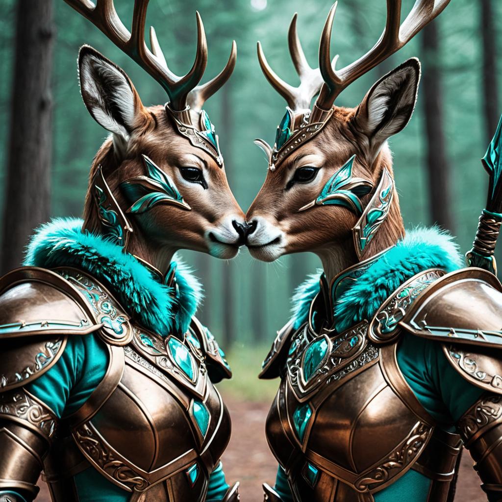 Cute anthropomorphic deer paladin princess wearing crimson and goldplate armor with a cape and crown. Fantasy forest scene in Disney and Pixar style, 8K DnD character art with cinematic lighting.