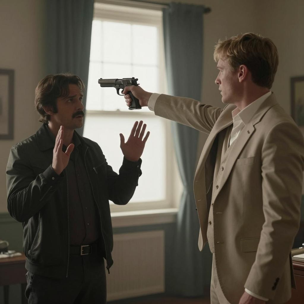 Dueling Men in a Grand Hallway