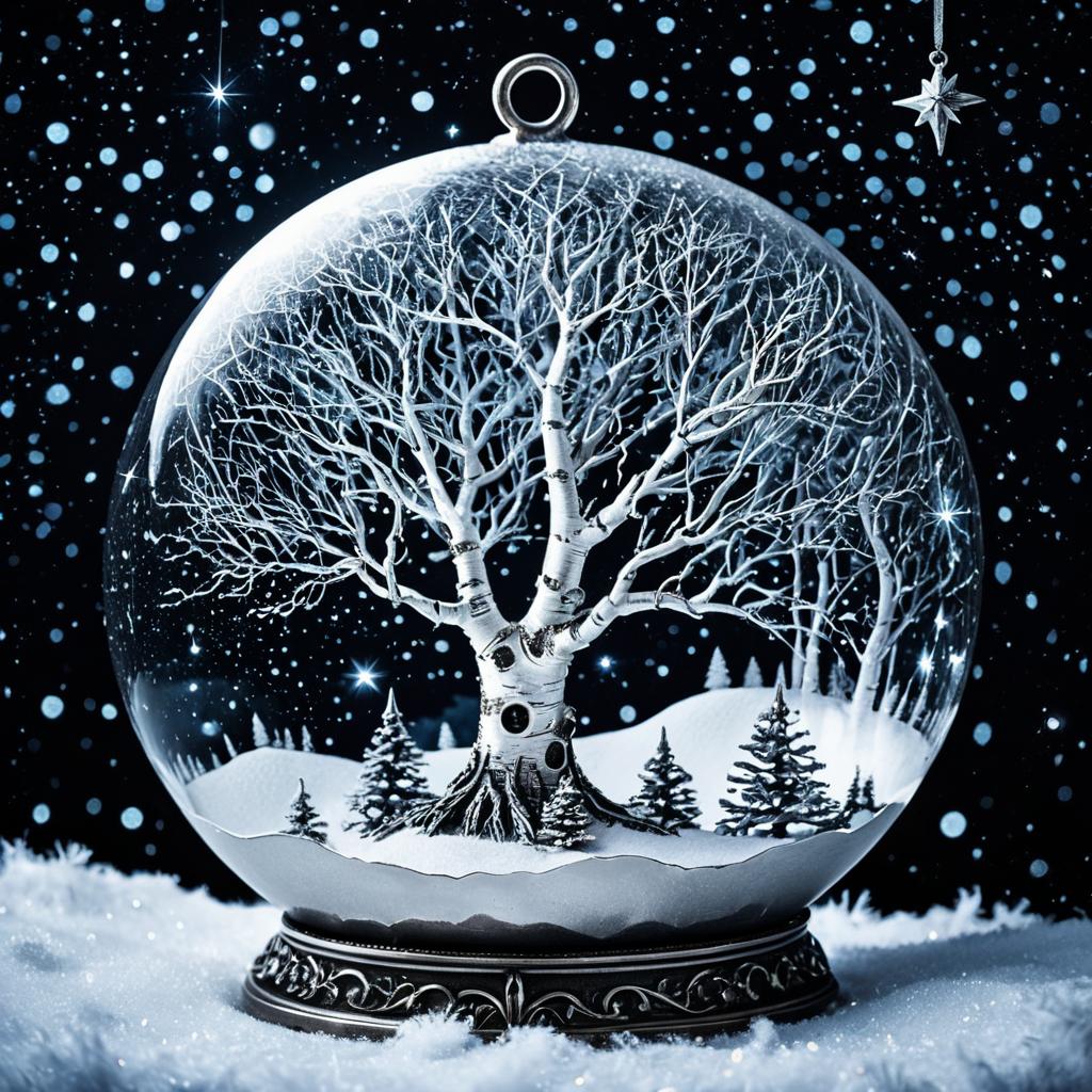 Luminous Palm Tree in Snowy Orb Landscape
