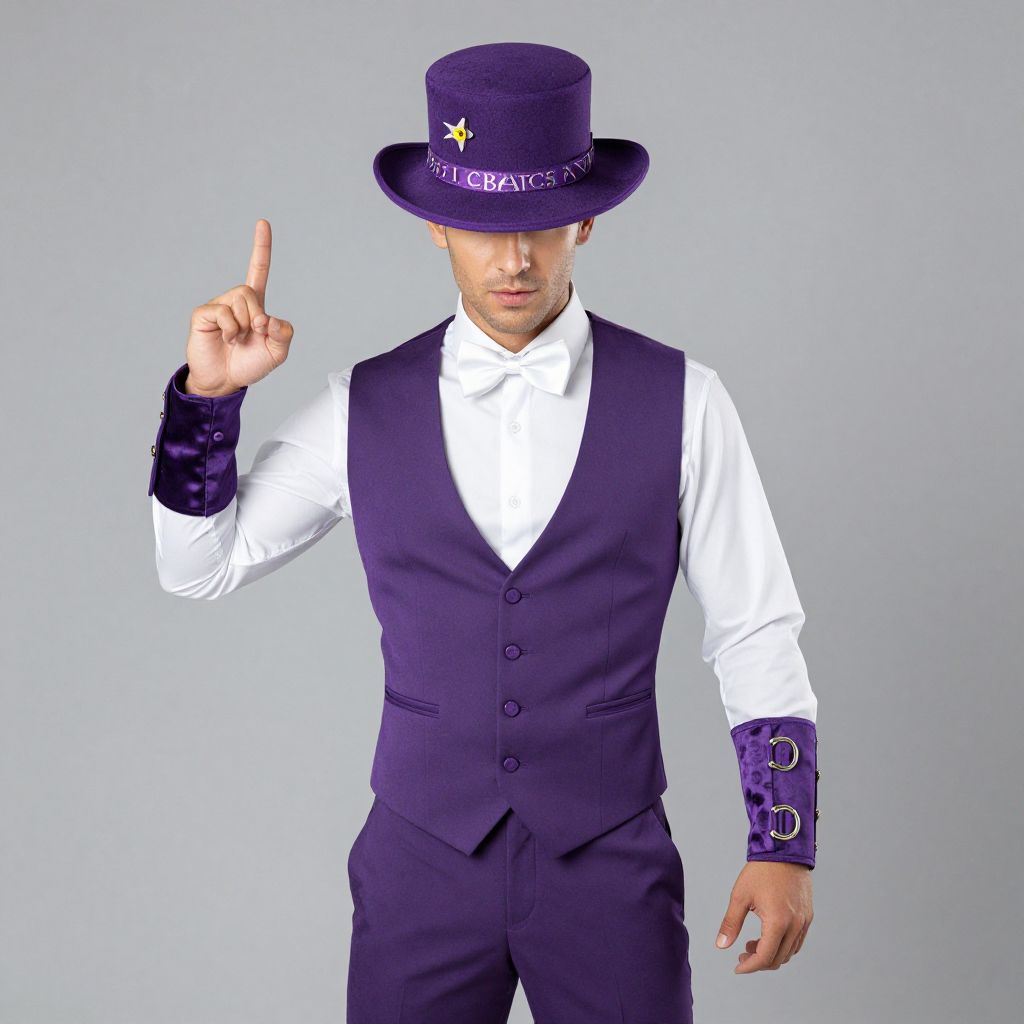 Purple Cobras Fancy Dress, man in a purple outfit and a white shirt and purple vest