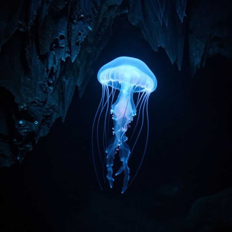 Bioluminescent Jellyfish in Cavern