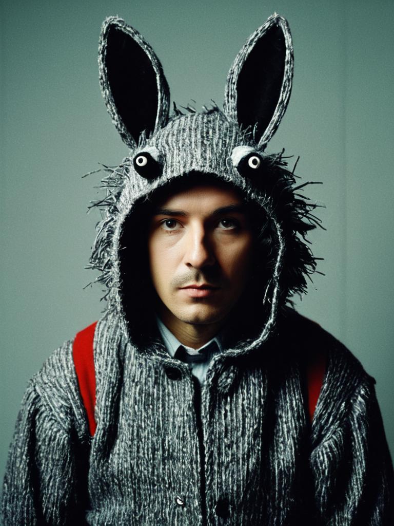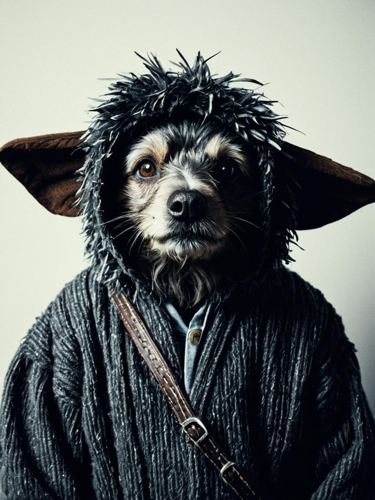 Person in Toto Costume, photorealistic studio portrait, sharp detail