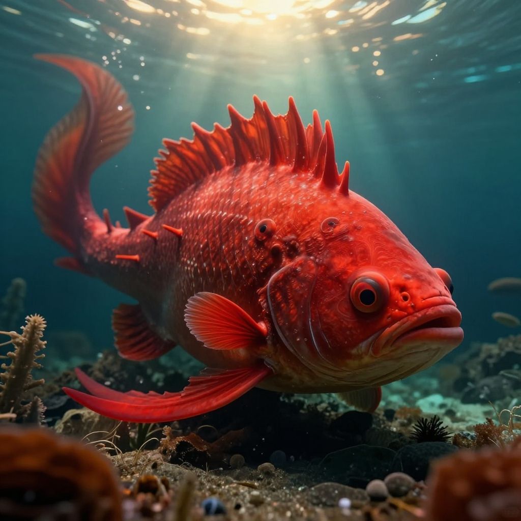 Photorealistic Red Spiked Fish Monster