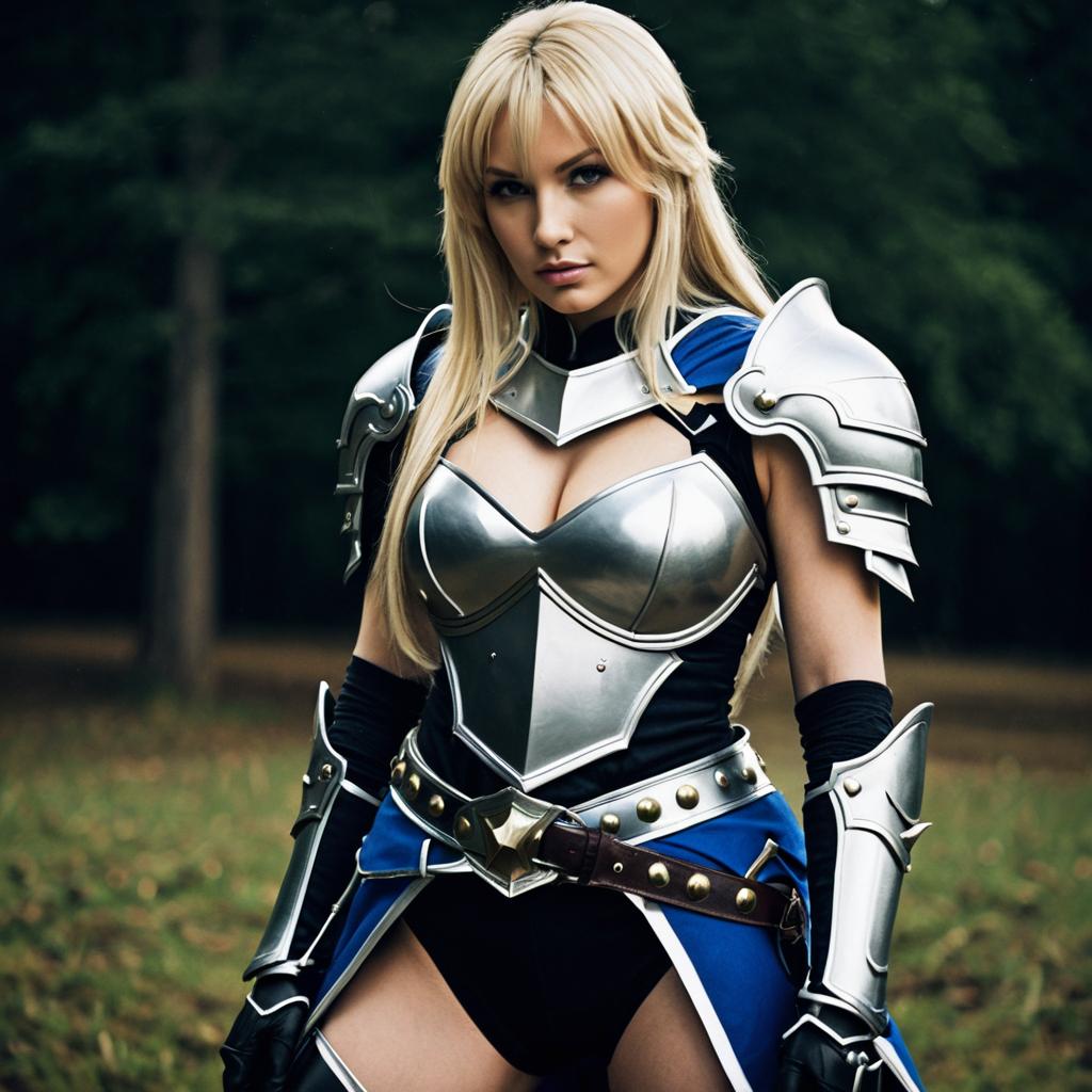Angel kof cosplay,1girl, wings, solo, blonde hair, angel wings, armor, feathered wings, angel, dress, looking at viewer, long hair