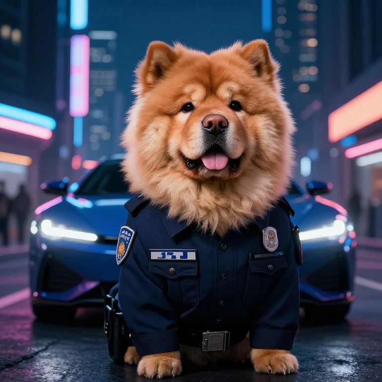Cyberpunk Chow-Chow Cop Portrait