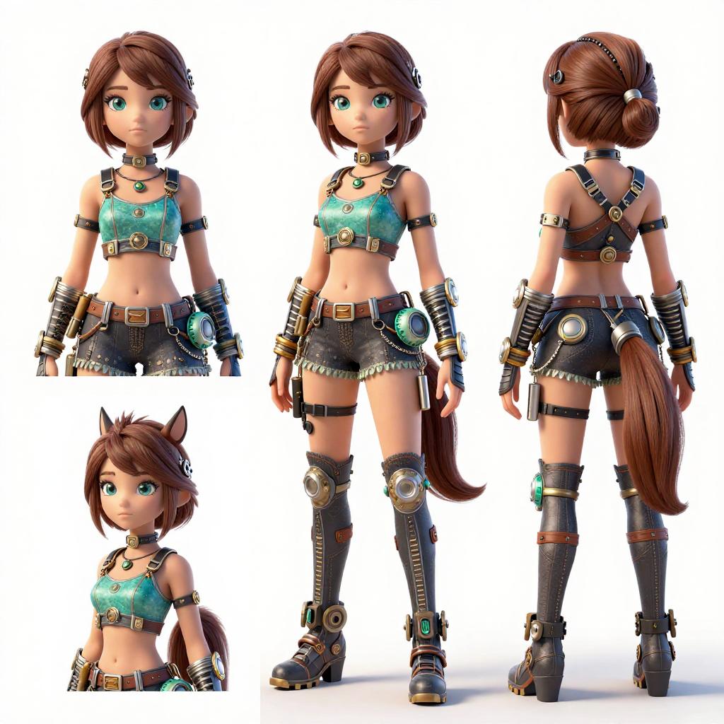 ((masterpiece, best quality)), original, absurdres, ((sfw)), creative, interesting, detailed, intricate, colorful, ((chara-sheet, multiple views, full body, front, back)), ((1girl, solo, age 20, she is 20 years old)), ((a wizard scribe)), ((eyes, _)), ((hair, hair pulled back)), ((clothes, festival clothes, horse girl, horse tail, futuristic clothes)), ((simple background, white background)), ((colors
