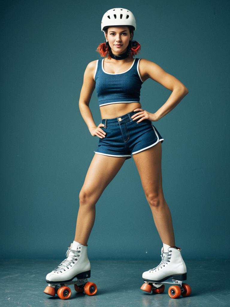 Woman in Roller Skating Outfit, full-body portrait on roller skates