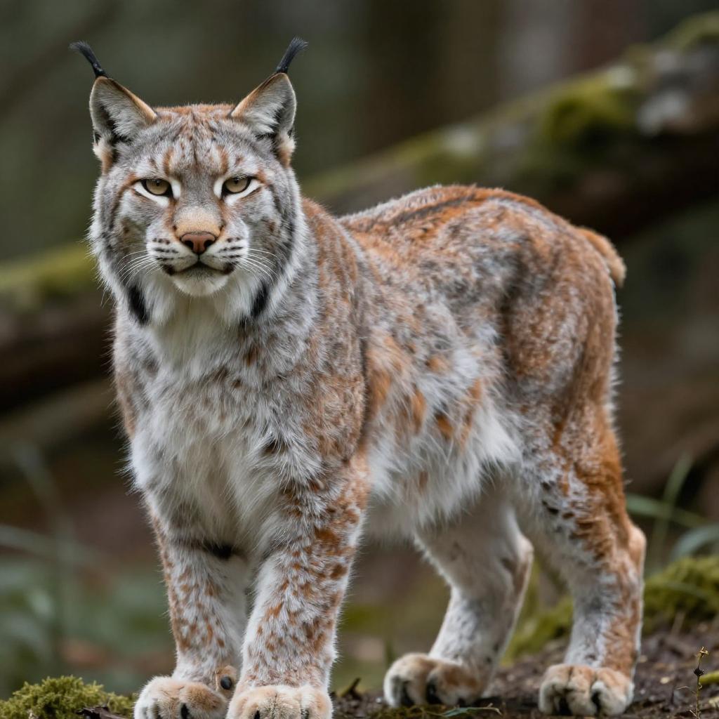 Anthro white lynx, male, adult, muscular, shorts, topless, looking at viewer, (realistic fur, fur, realistic fur texture:1), detailed background, wilderness background, photorealistic, hyper realistic, ultra detailed