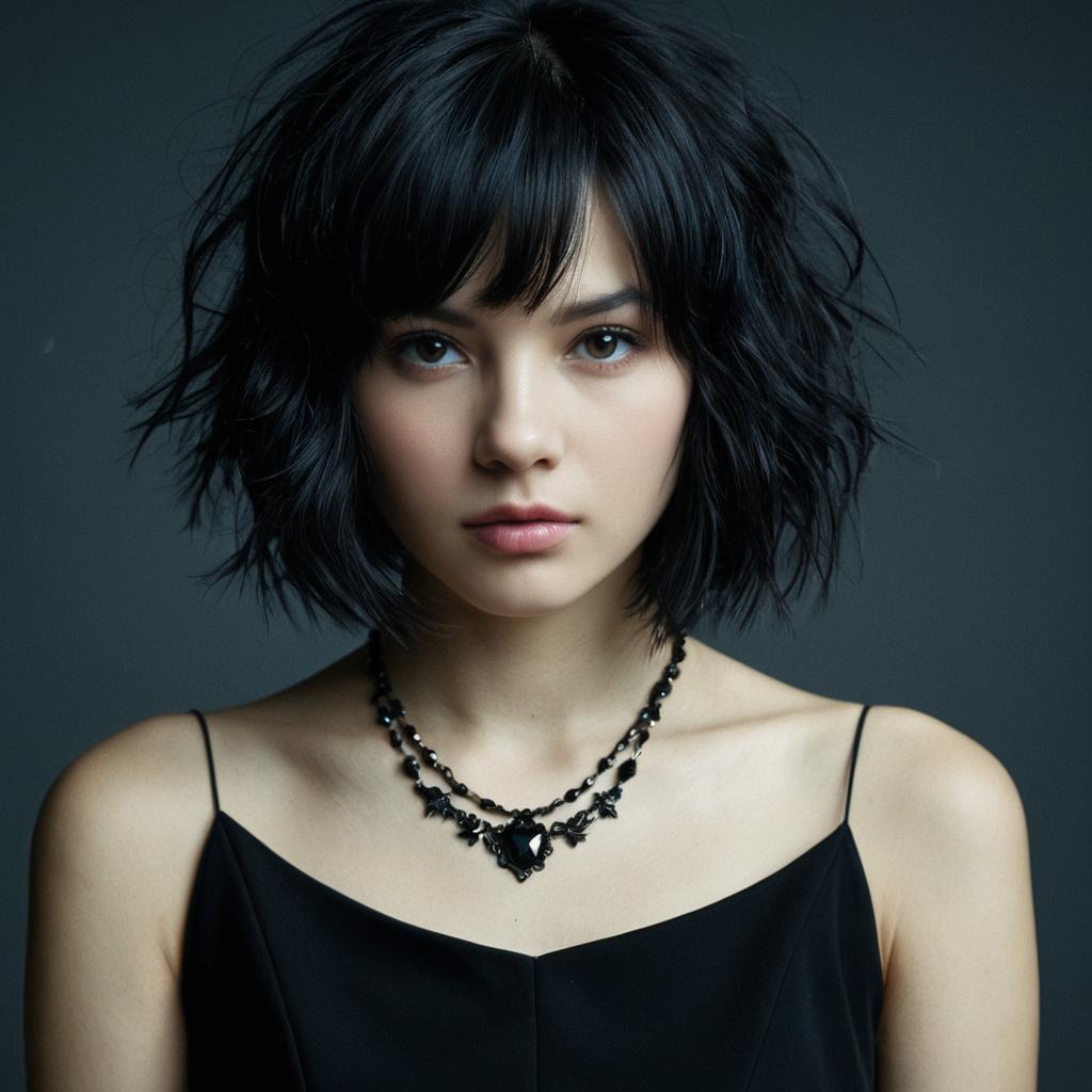 Ruby rose halloween costume,1girl, solo, dress, flower, red hair, rose, jewelry, necklace, short hair, choker