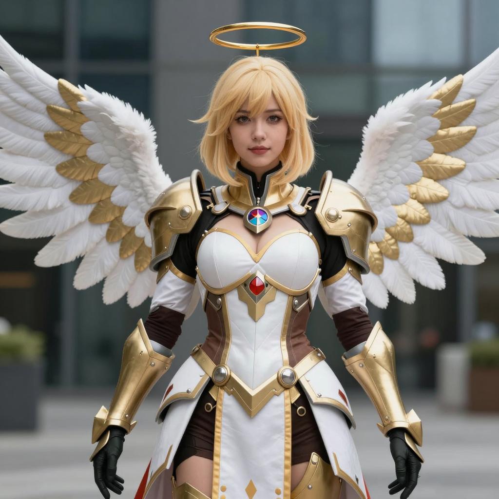 Realistic Mercy Cosplay Portrait in Urban Setting