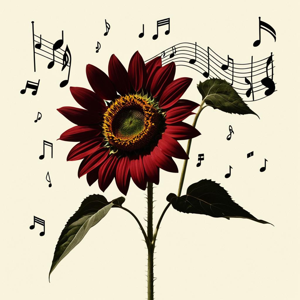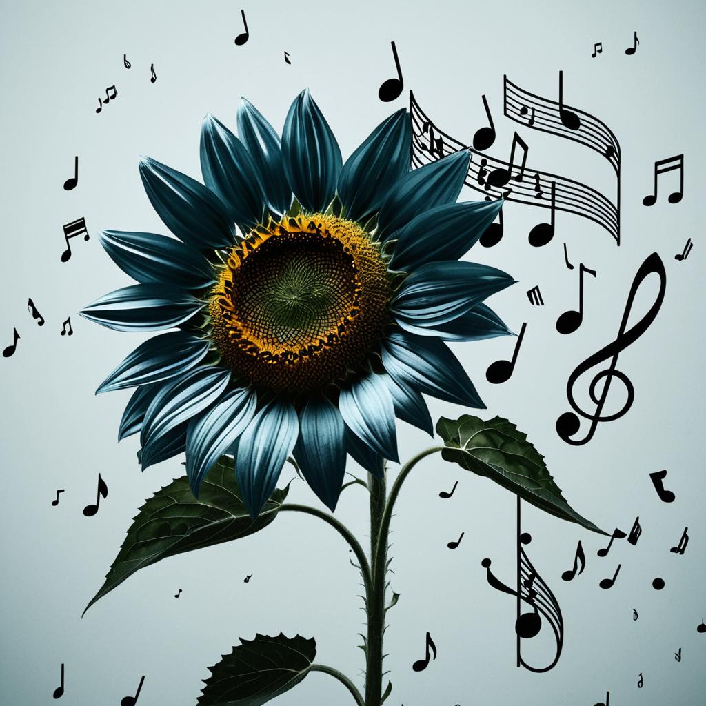 Violet Sunflower with Musical Notes