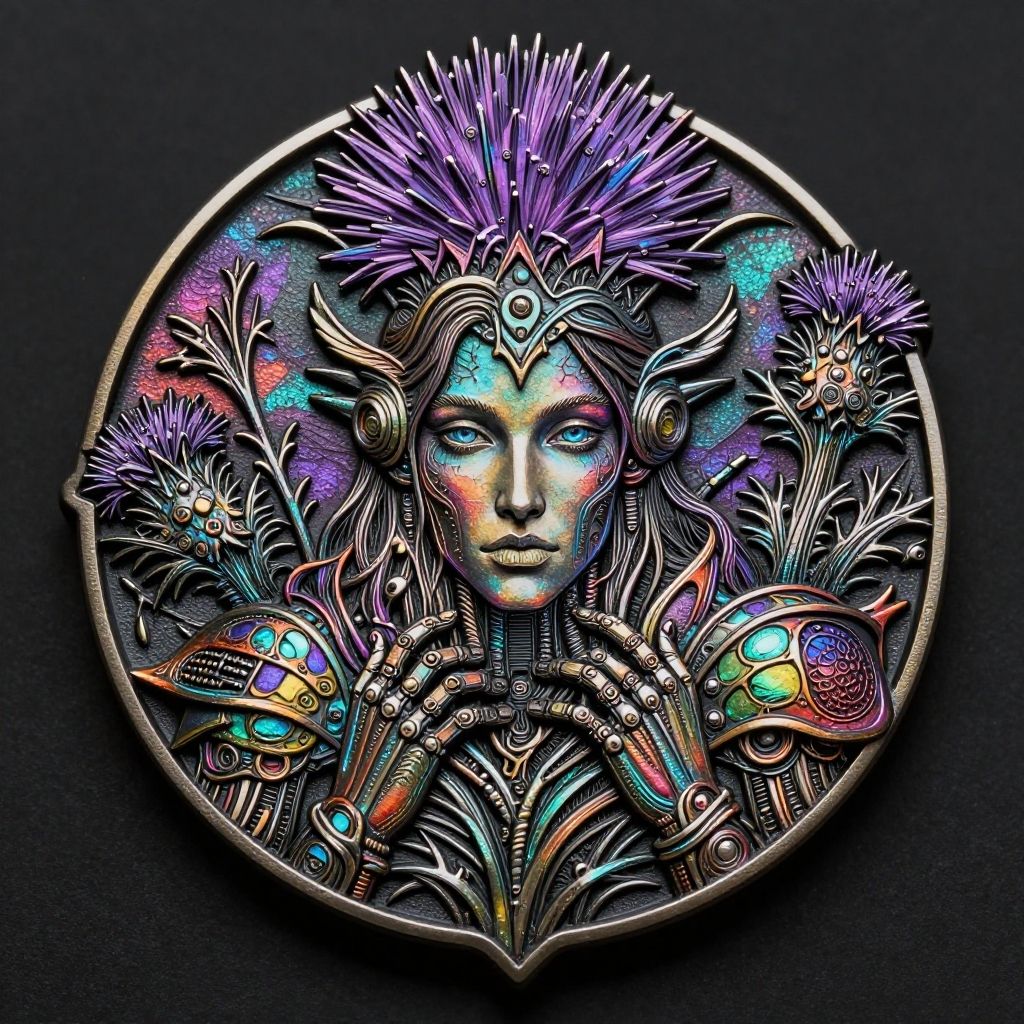 Line art trinket depicting a ThistleLee Krasner, natural, shimmering, vibrant, gothic, rpg, 1400ad, ultra detailed, detailed, immersive, reminiscent of high fantasy RPG games, HD, masterpiece, best quality, hyper detailed, super realistic, perfect face, perfect hands, award-winning, professional, breathtaking, linquiveraenchanting Valleyboisterous weatherbiomechanical style . blend of organic and mechanical elements, futuristic, cybernetic, intricate