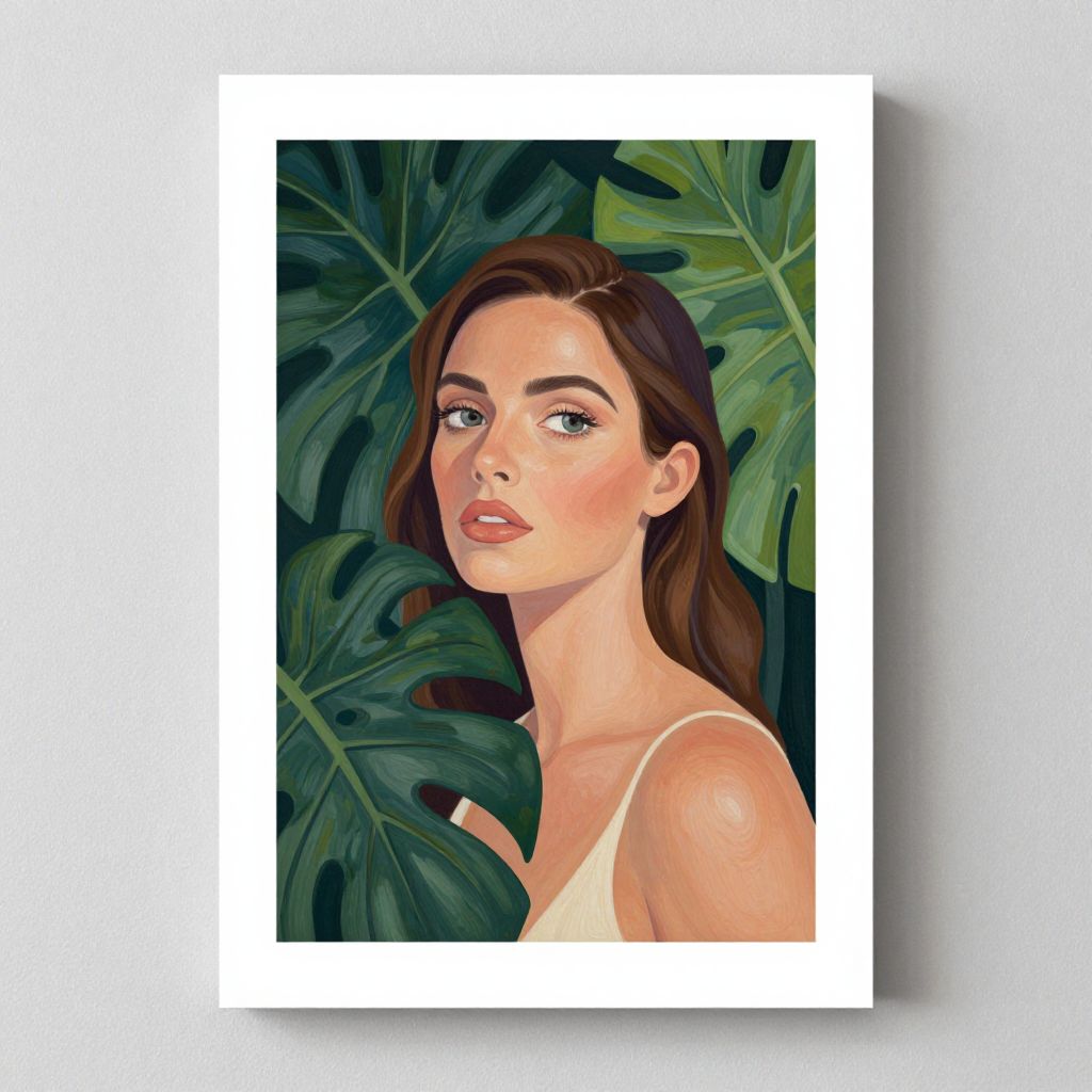 Female empowerment, art print ,woman artwork, portrait artwork ,claudia tremblay dreamy girl with giant leaves art print