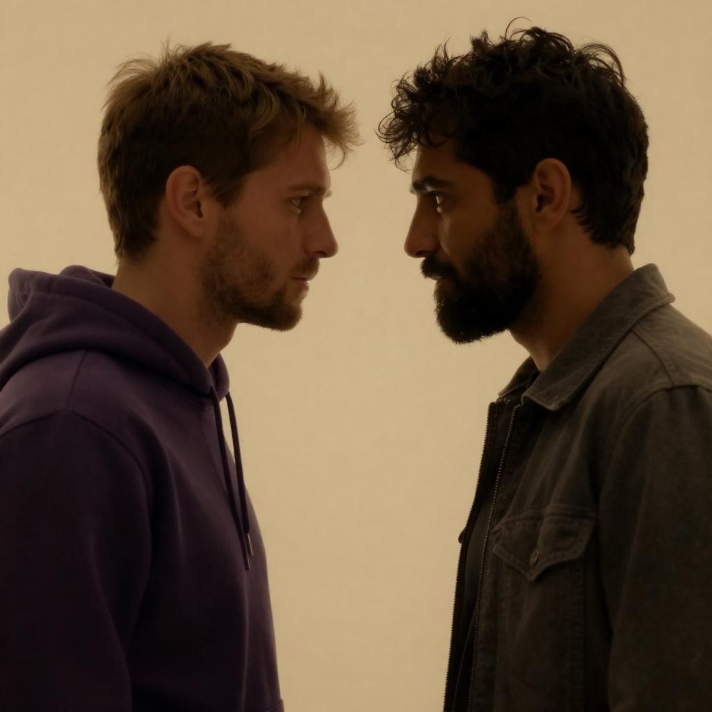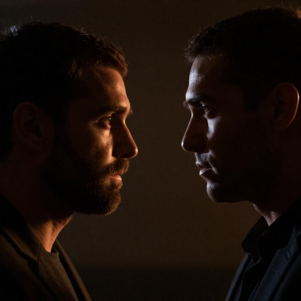 Dramatic Close-Up of Two Men