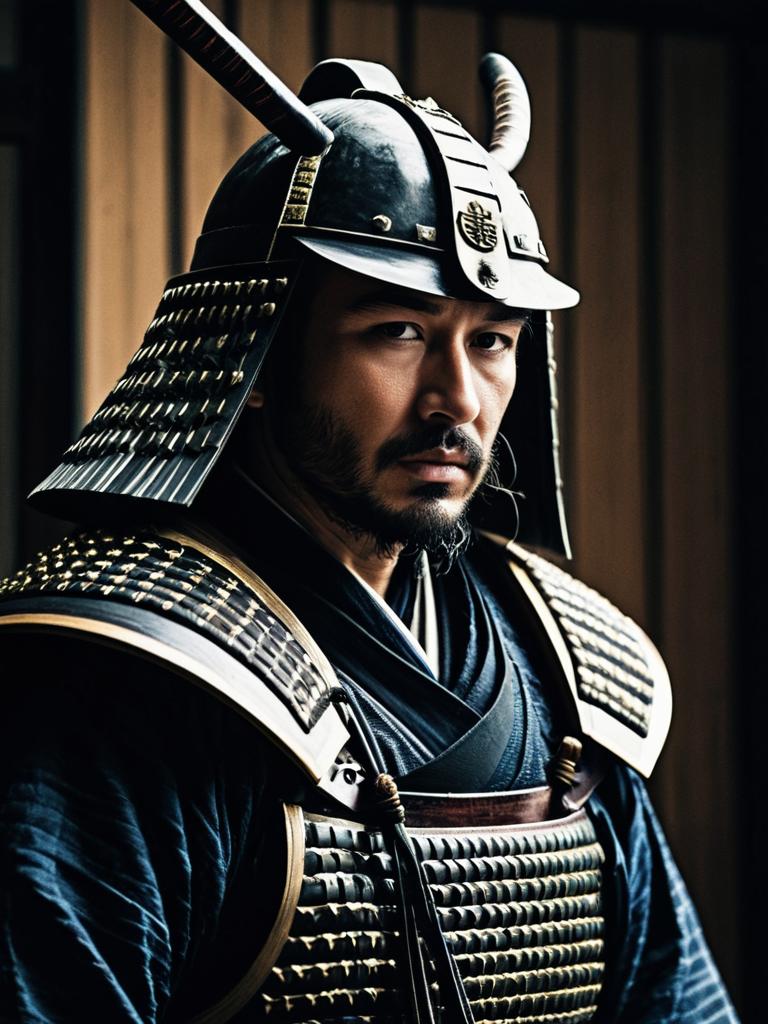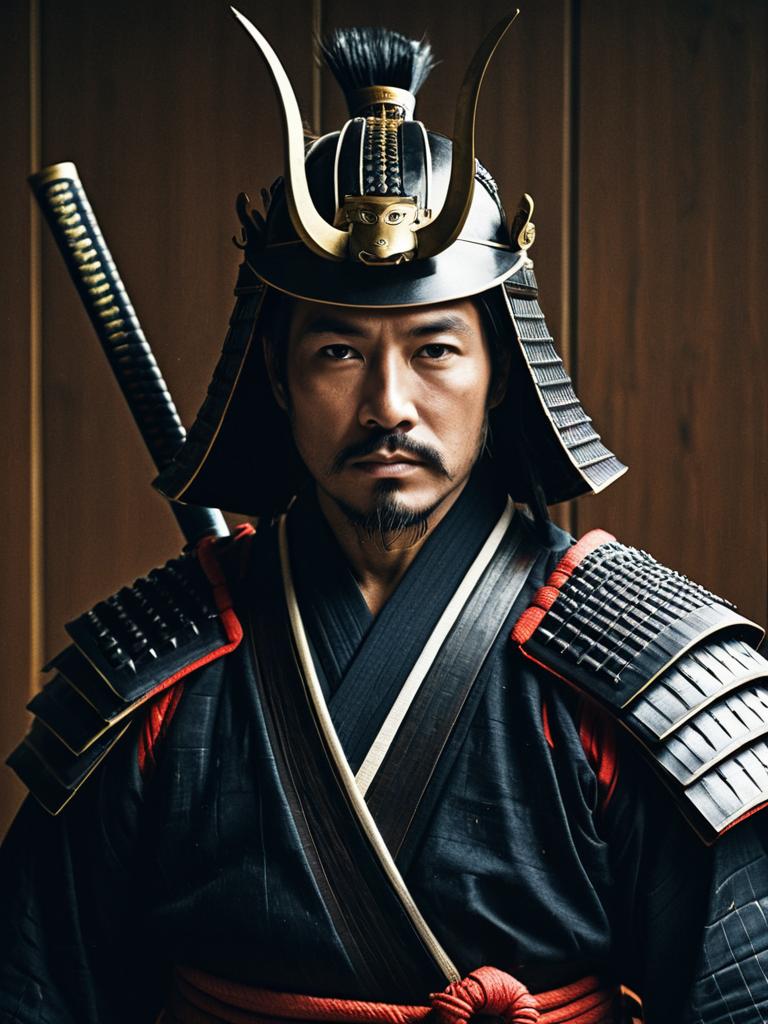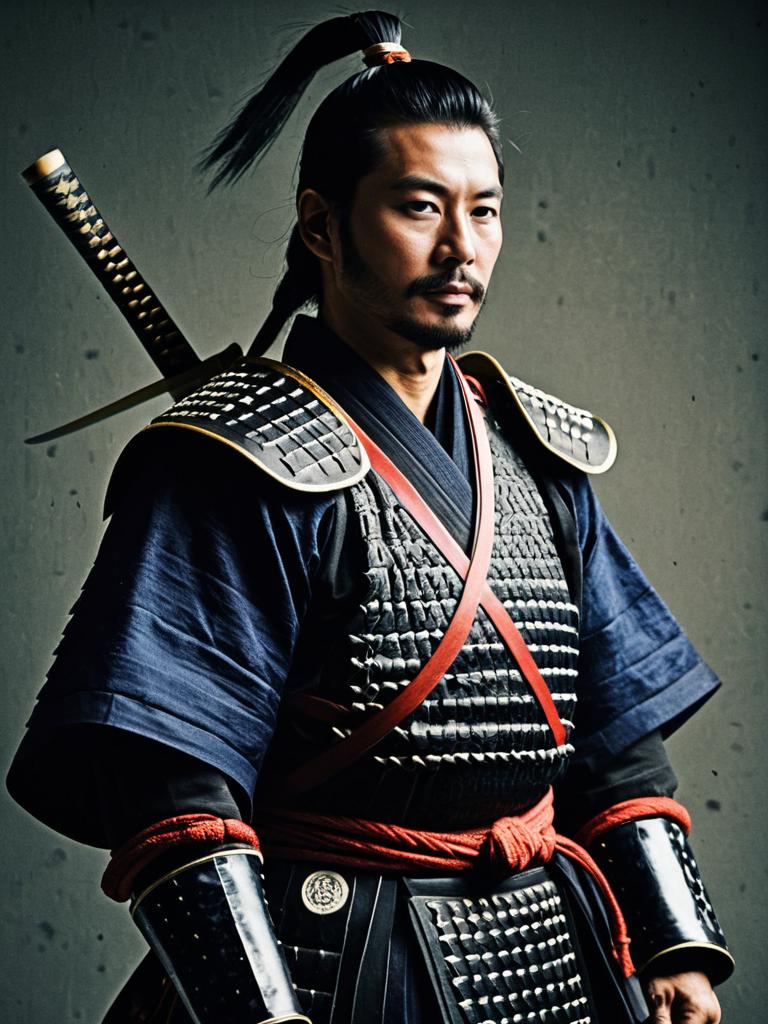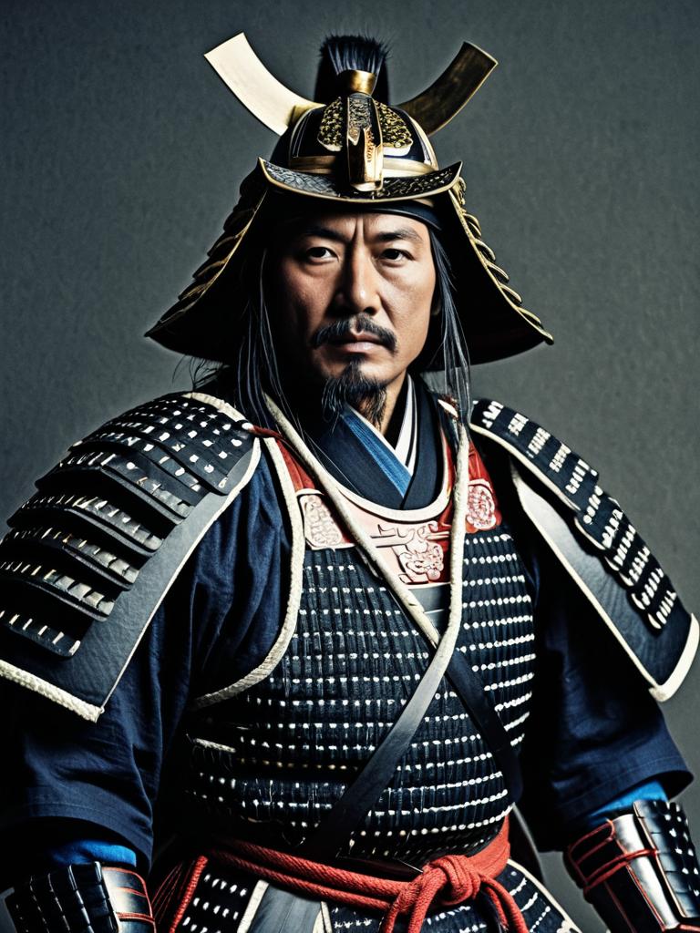 Man in Samurai Costume, photorealistic detailed studio portrait