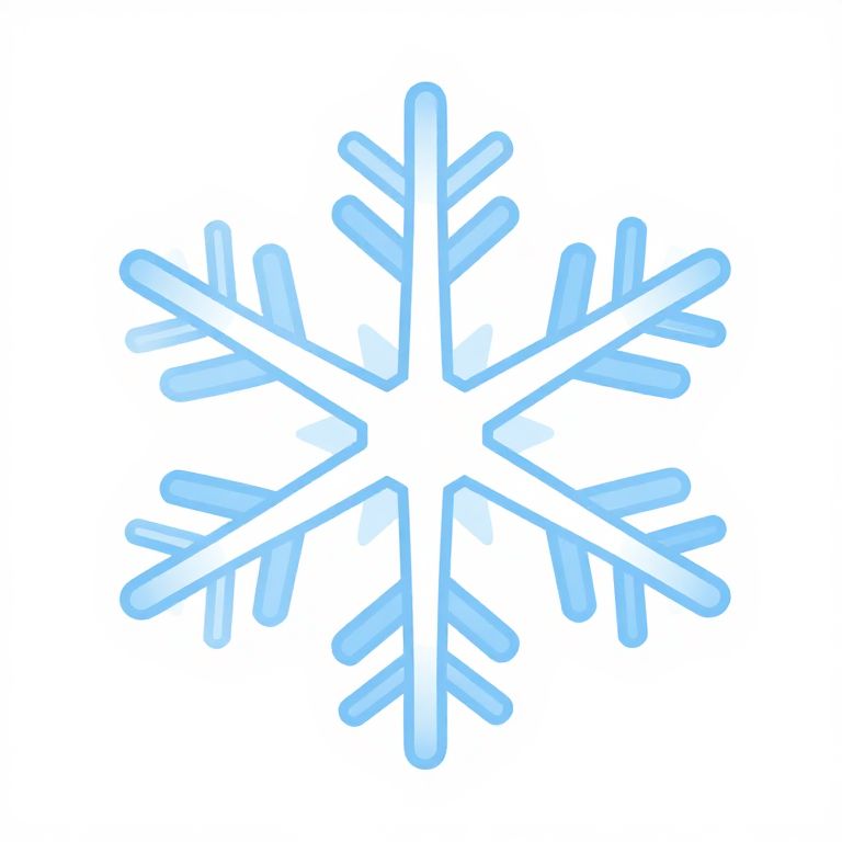 Snowflake 2d flat illustration, bold crisp lines with fine symmetric detail, designed in soft pastel blues and whites, delicate frost patterns radiating from center, minimalistic composition, modern vector art aesthetic