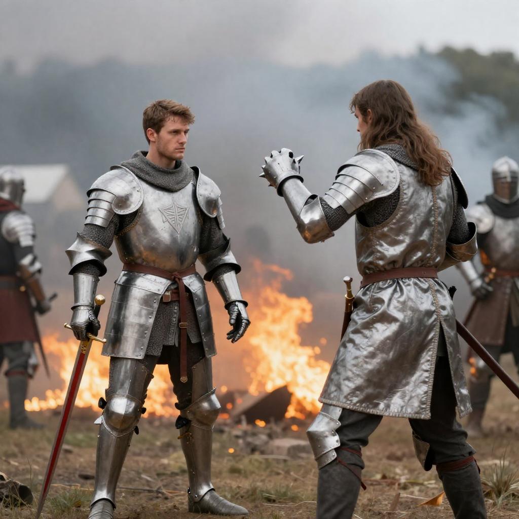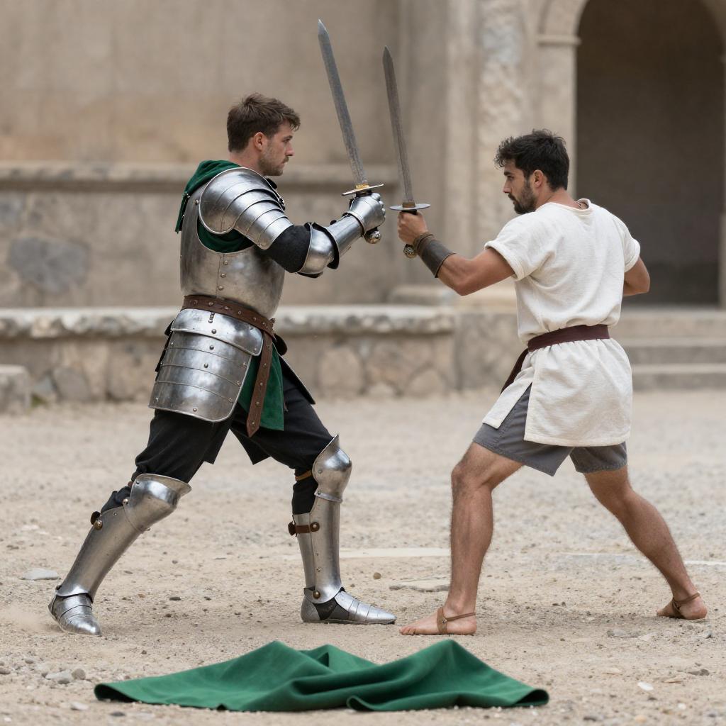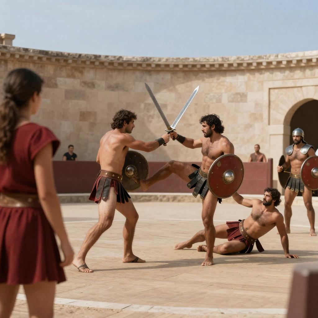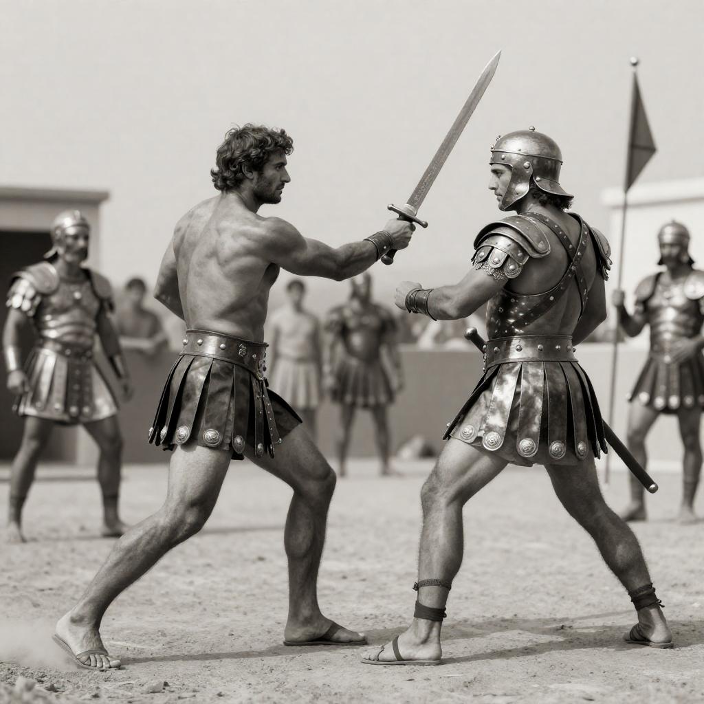 Gladiator Duel Amid Ruined Stone Arena