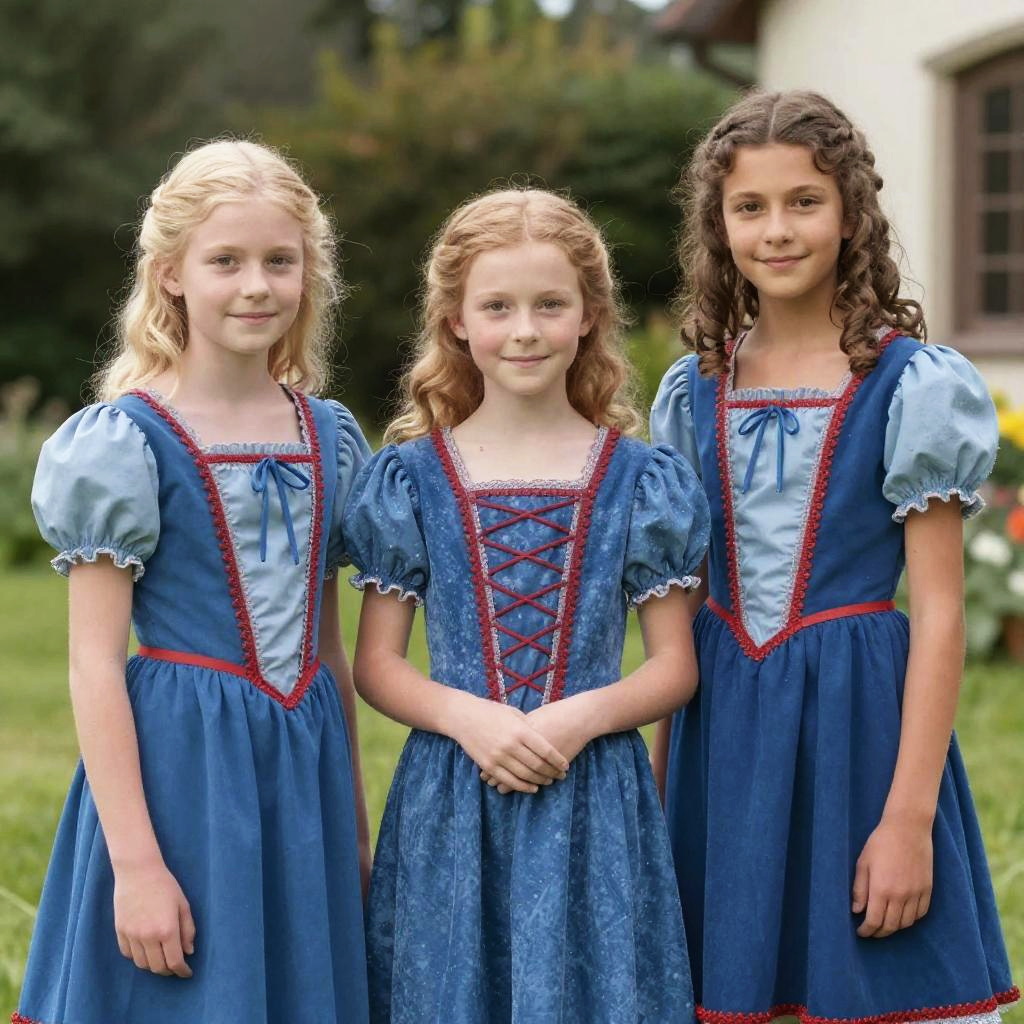 Evie Costume Descendants, dressed in a blue dress with red trim