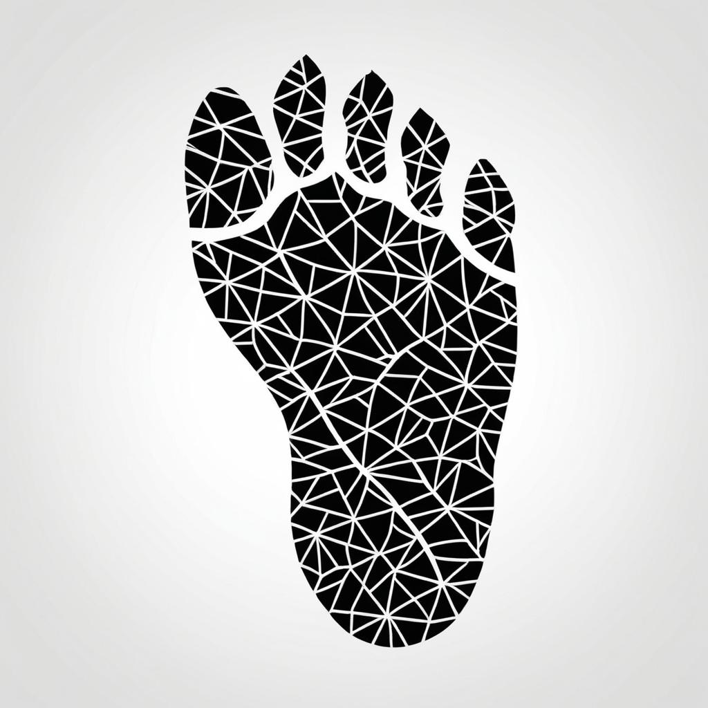 Geometric Patterns A logo of an environmentally conscious brand with a leaf-covered foot imprint symbol, representing the concept of carbon footprint reduction, while also symbolizing the individual's journey towards sustainability, using contrasting monochrome colors to create a bold and striking effect, vector art, sharp edges and repetitive shapes