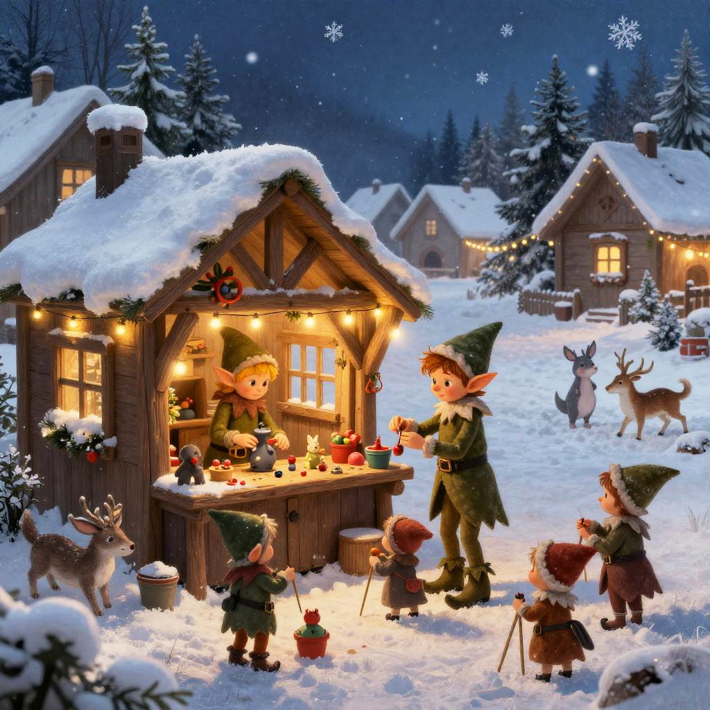 Whimsical Elf Toyshop in Snowy Village