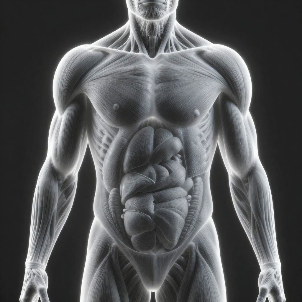 Realistic photo.3D rendering, artistic anatomical render, ultra quality, human anatomy with transparent skin revealing muscular structure instead of organs, delicate and intricate creative patterns, monochrome with backlighting, reflecting humanity's complexity, surreal and ethereal quality, 4090 RTX, ray tracing render, ultra realistic, UHD, many details realistic photo