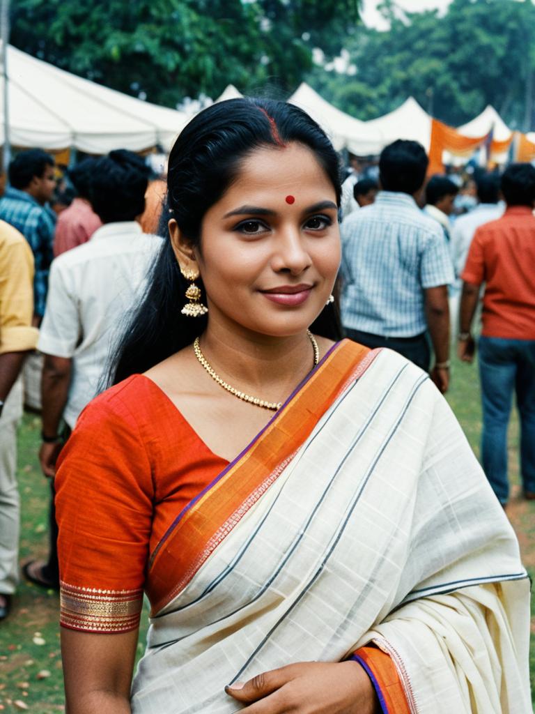 Woman in Dhoti Suit Salwar, candid portrait at cultural event