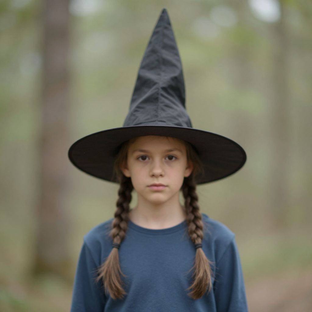 Boy in Pilgrim Witch Hat Outdoors