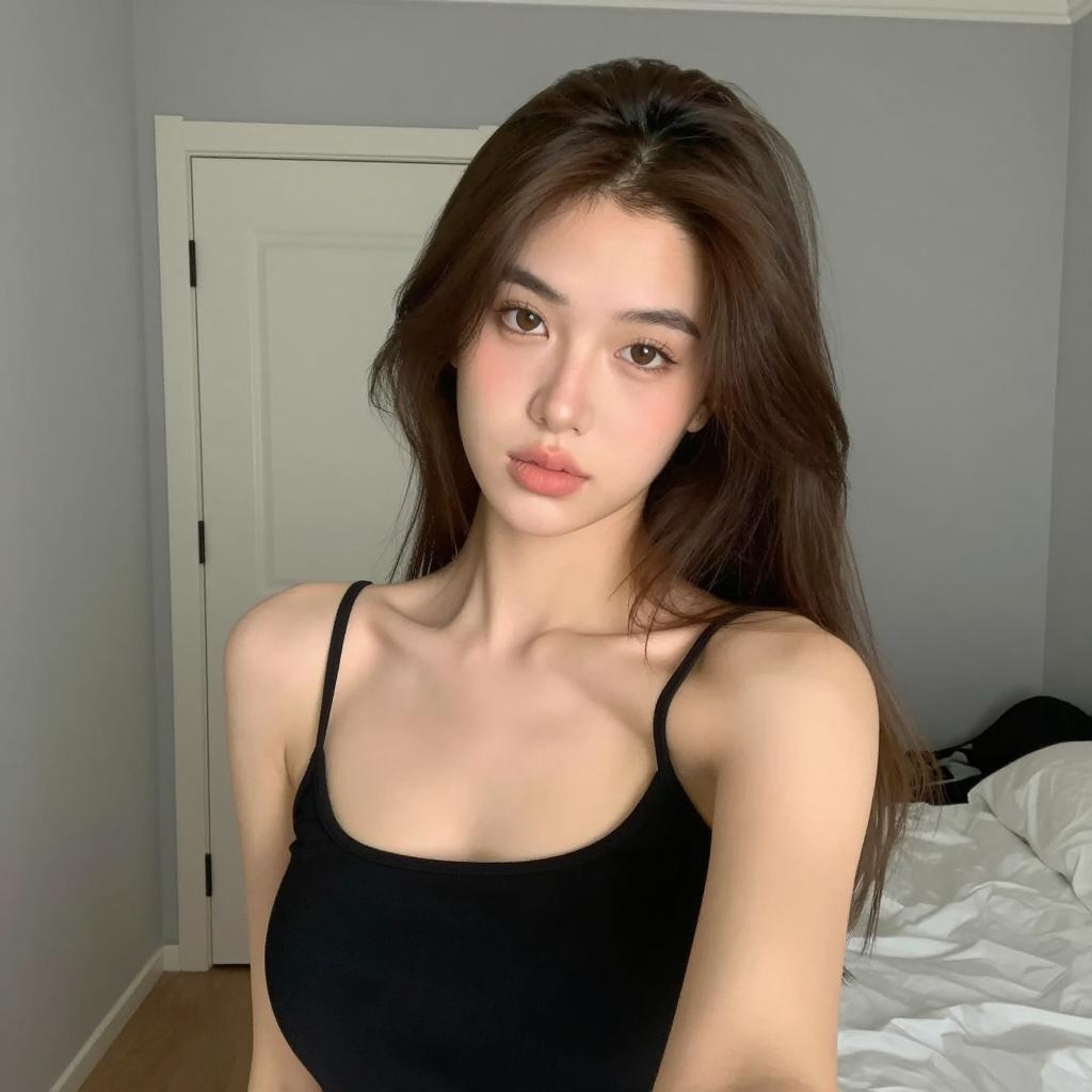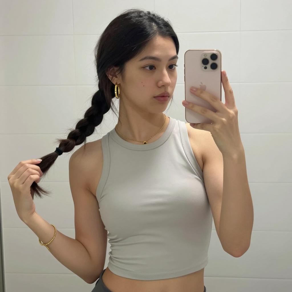 Trendy Young Woman Mirror Selfie