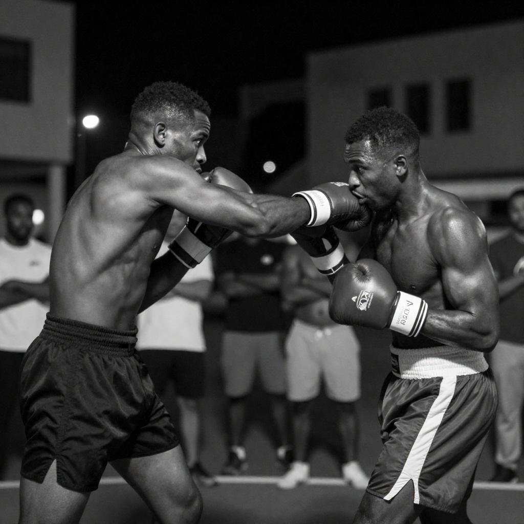 Urban Night Boxing Match in B&W