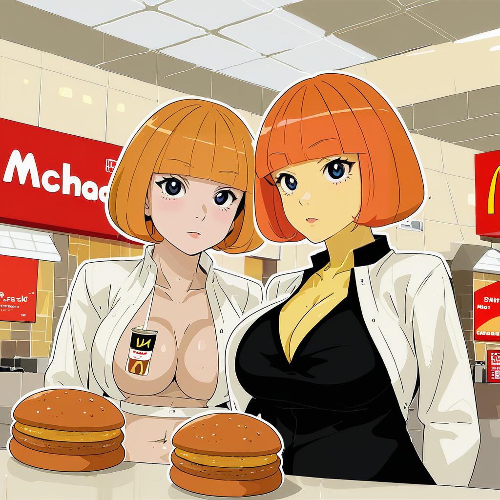 Illustration of Mother (yoru mac), mcdonald's in the style of Untue