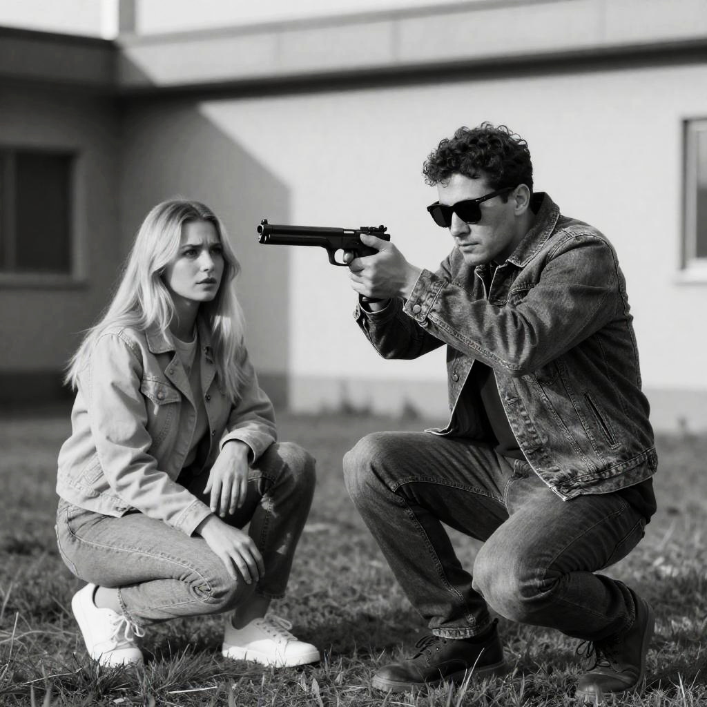 Dramatic Scene in a Dim Hallway