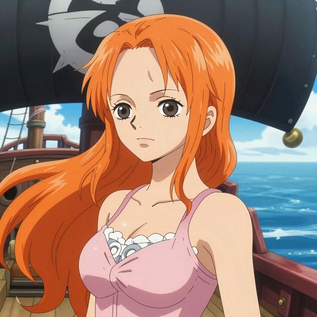 One Piece femboy character sitting by the sea, gentle smile, anime style with vivid colors, delicate clothing design, vibrant sky, subtle wind effects in hair and clothes