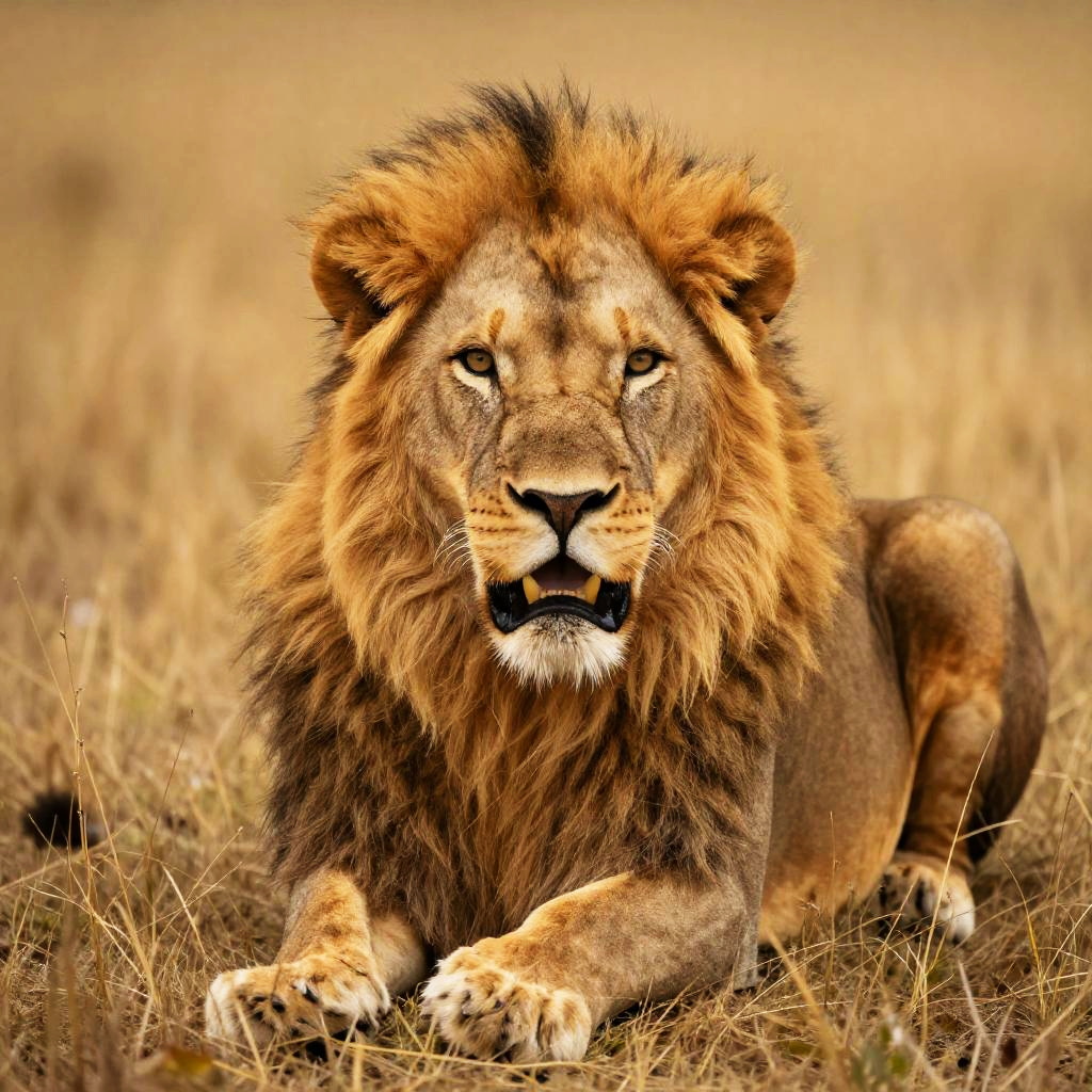 Majestic Male Lion in Golden Grass