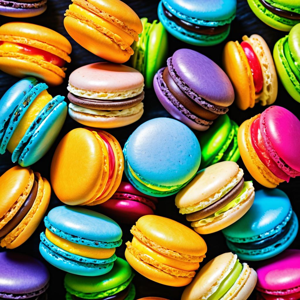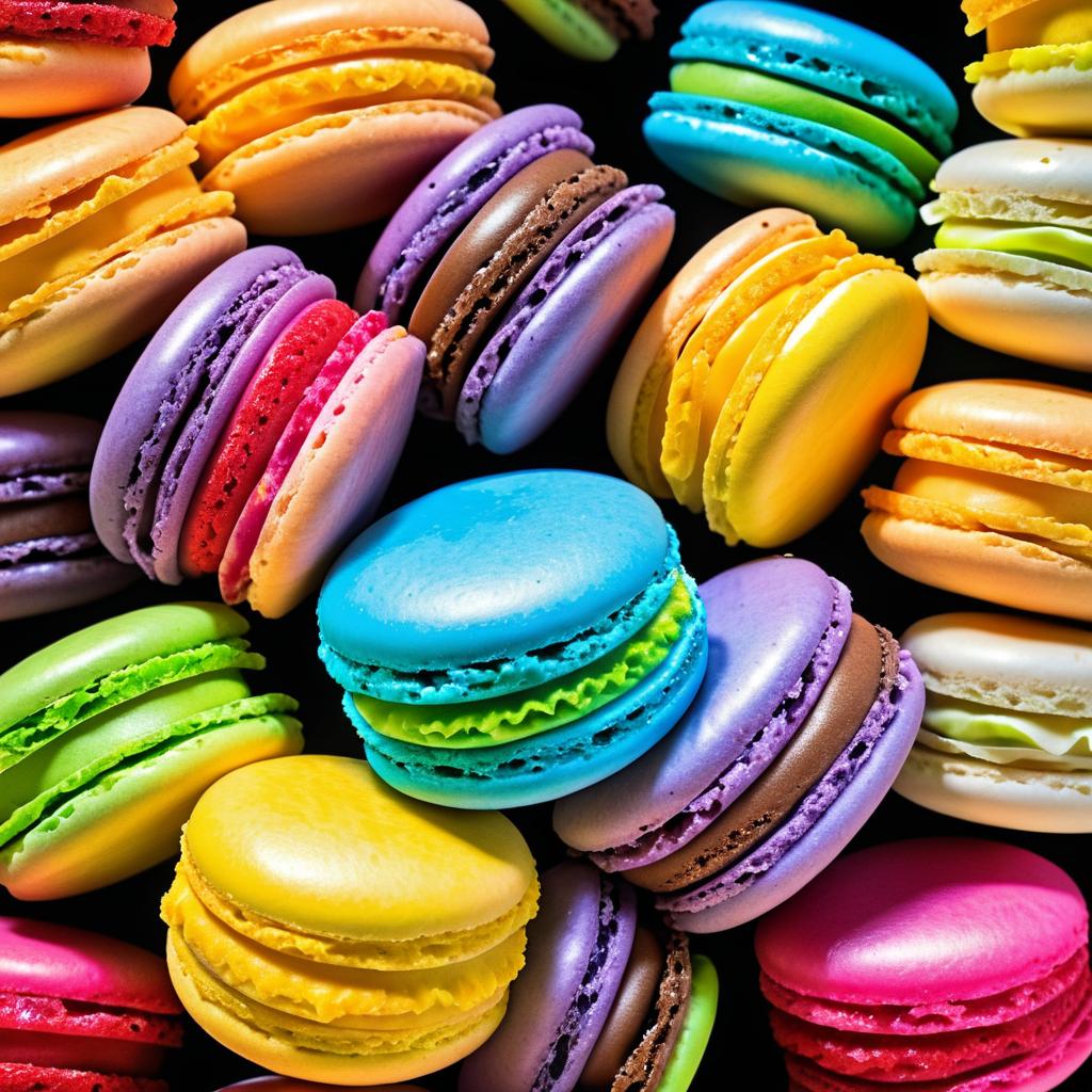 Macro gourmet photography of colorful macarons in HDR, professional quality with vibrant details.