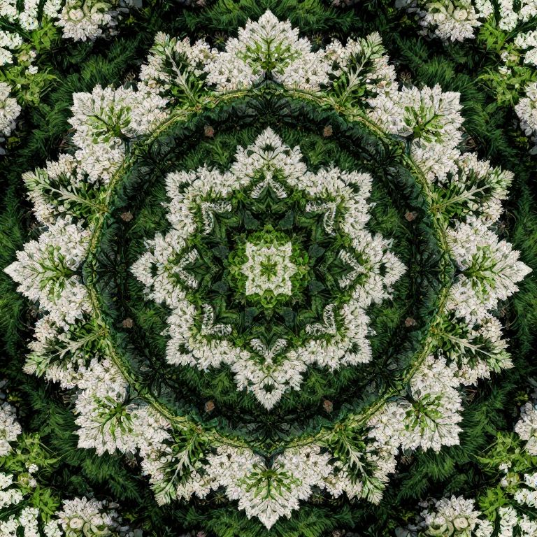 A garden where plants grow in perfect mathematical fractals, their blossoms repeating infinite patterns of impossible shapes.