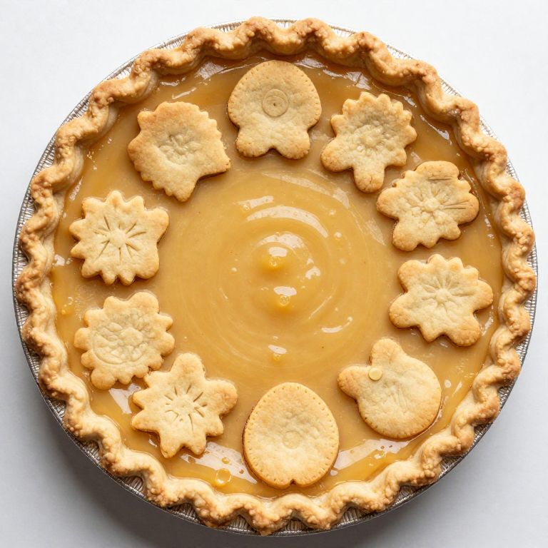 An overhead view of an apple butter pie with crust cookie cutouts on top