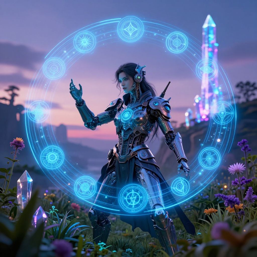Telek mystical telekinetic powers swirling energy field around a young woman, glowing aura, dynamic motion lines, futuristic urban background, vibrant colors, sci-fi fantasy art style