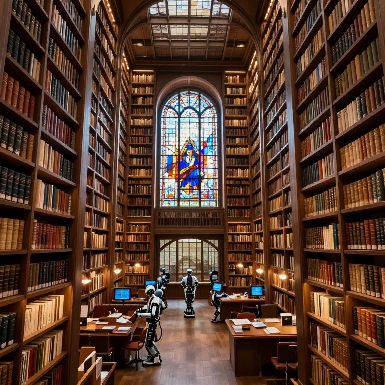 Solitary Figure in Towering Library