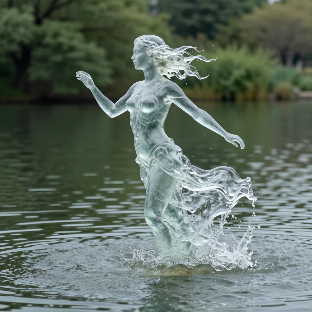 An eternal symphony of joy emerges as liquid laughter cascades from marble visages, weaving ripples of mirth across a mirrored sea that reflects the boundless expanse of freedom and the timeless dance of life.