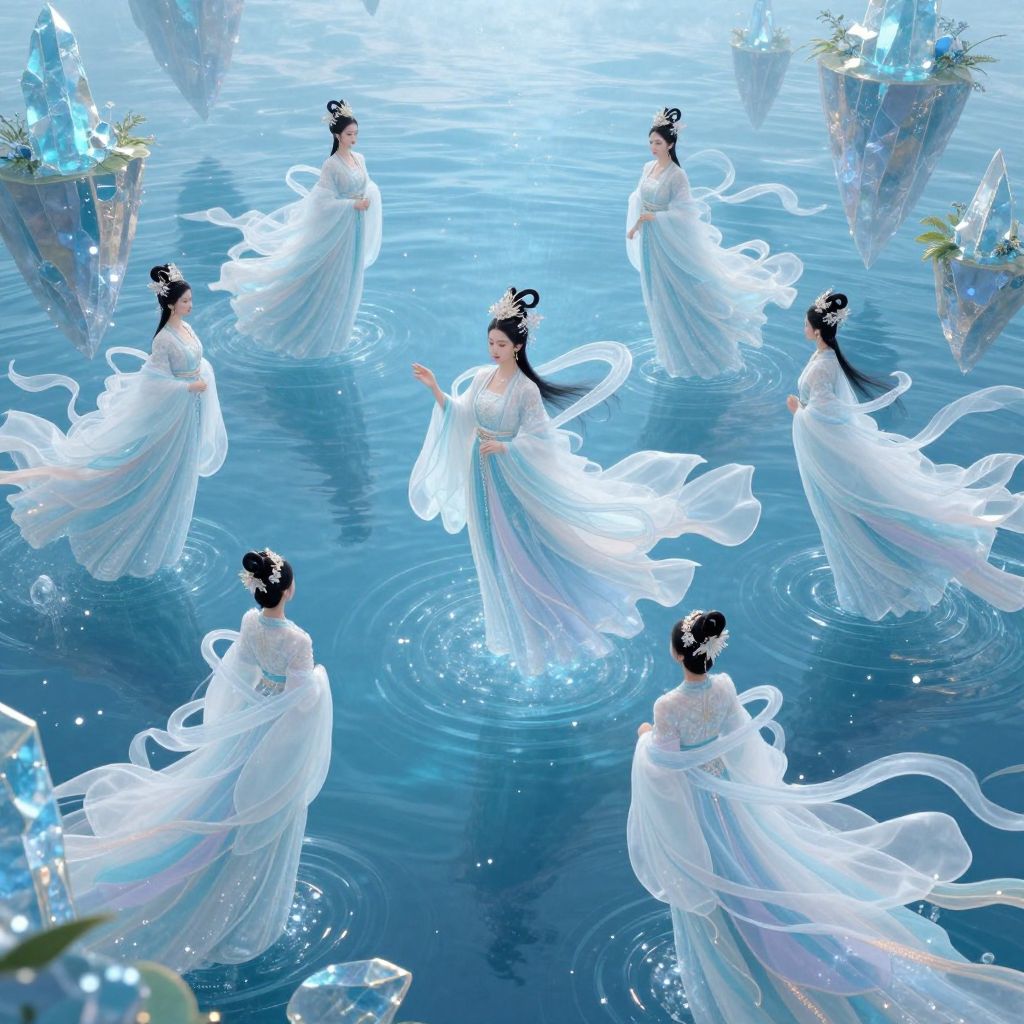 Elegant Mythical Beings Above Waters