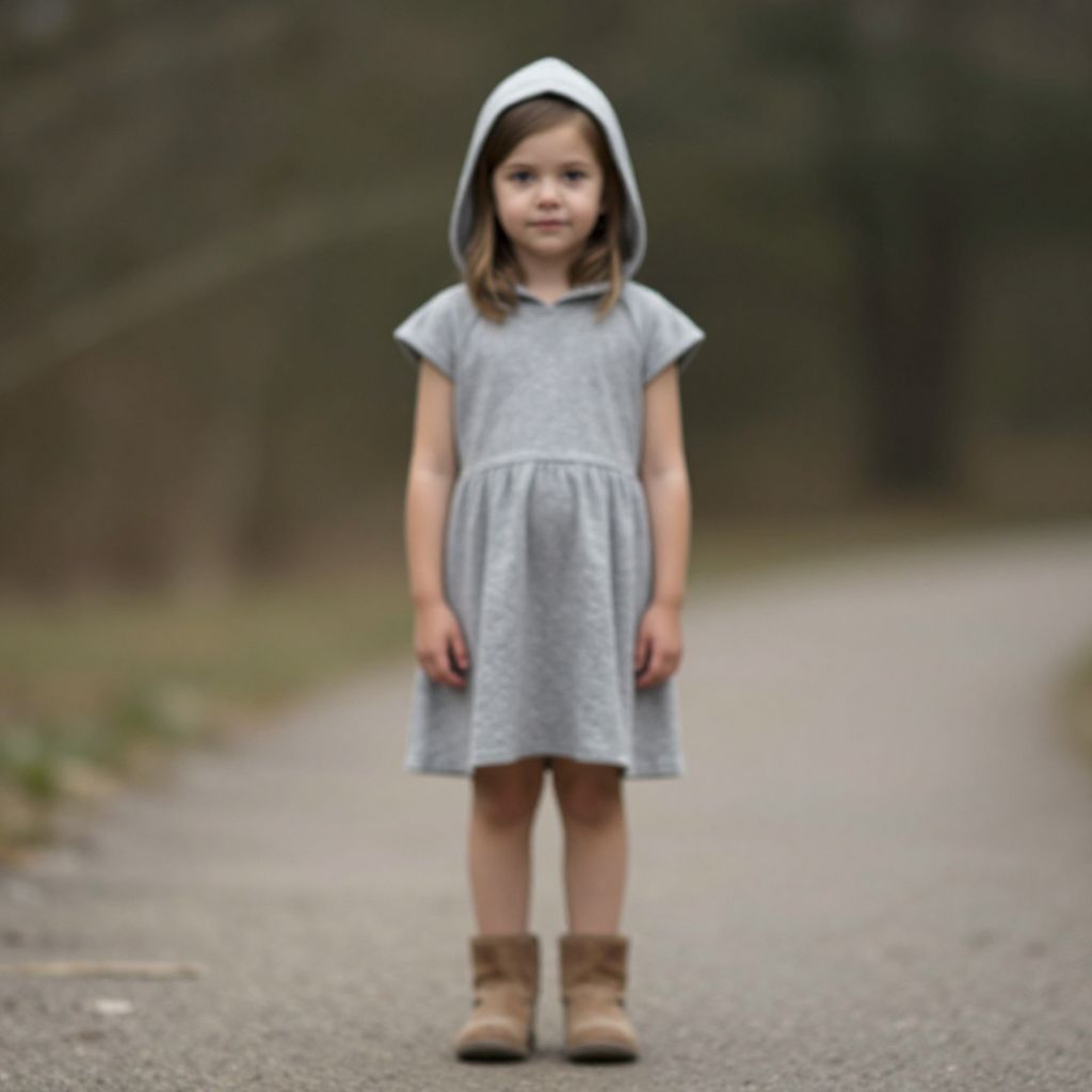 Young Girl in Hooded Dress Outdoors