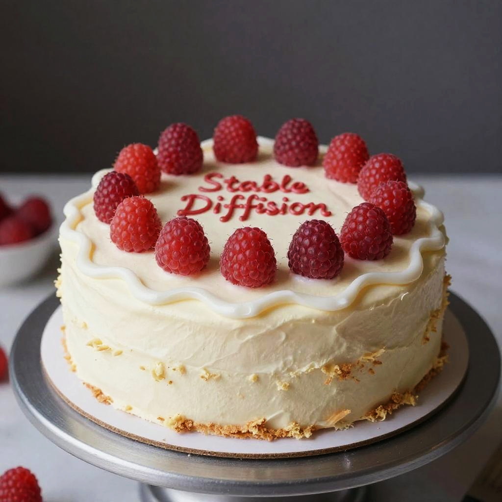 Raspberry chiffon cake with icing text 'Stable Diffusion', gourmet cooking, studio lighting, Eastman reversal film style, vibrant colors, soft focus, nostalgic look