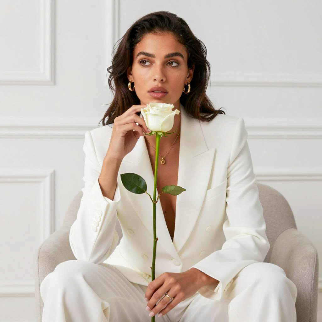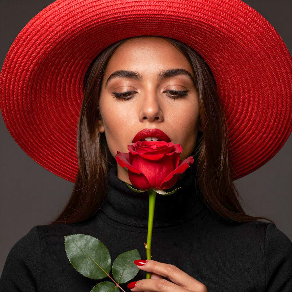 Elegant Woman with Flowers and Hat