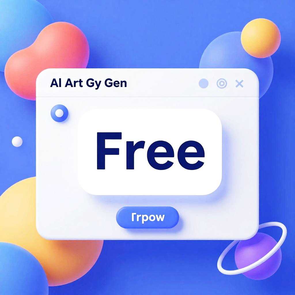 Digital graphic of a white art generator window with "Free" label, blue background, colorful abstract shapes, and "Troow" button.