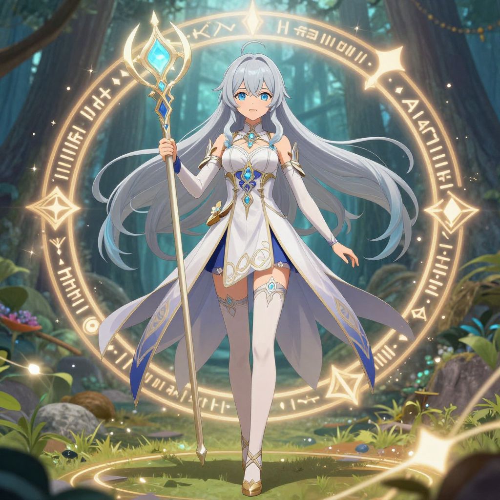 Anime Fantasy Character with Magical Staff