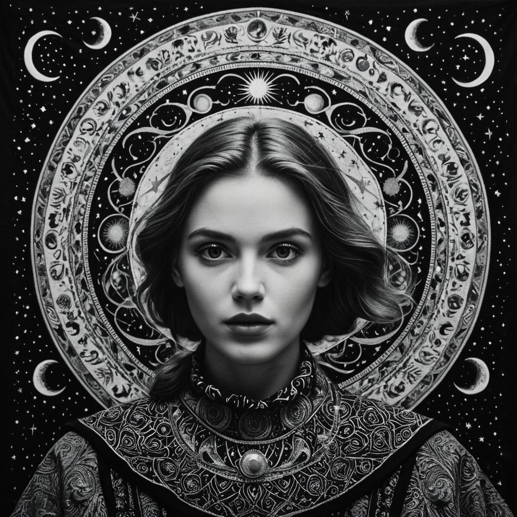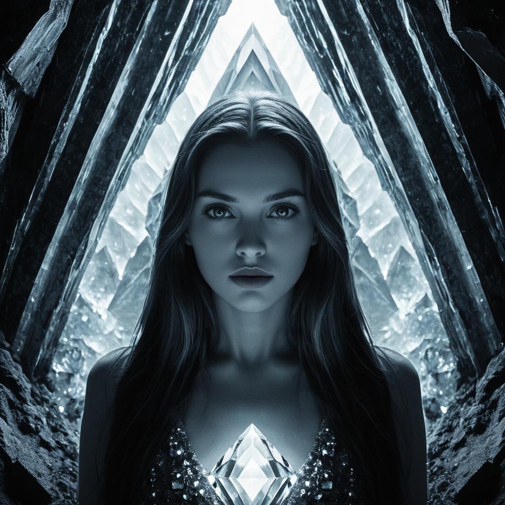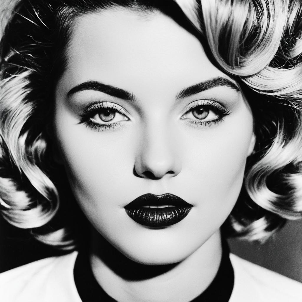 Monochrome portrait: twilight hunter with steely gray eyes and dark wine lips. Centered in a surreal shifting shadows, stark contrasts, ethereal shadows. Hyper-detailed, visionary composition blending reality and illusion. Cinematic allure, emotional depth.